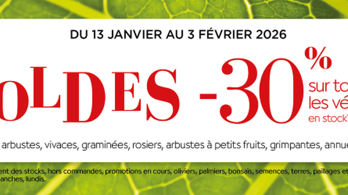 Du 13 janvier au 3 février 2026, profitez de -30 % sur tous nos végétaux en stock !